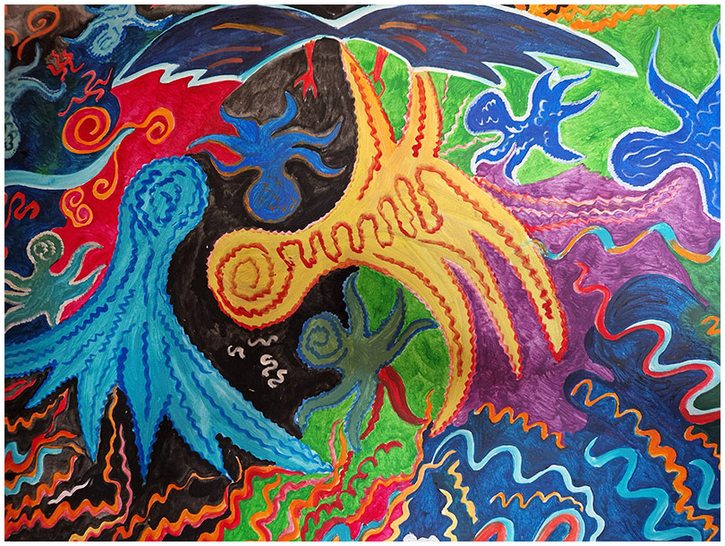 Titolo: Abissi – Dimensioni: 40×60 cm – Tecnica: Tempera – Cornice: No cornice – Commento: collezione privata